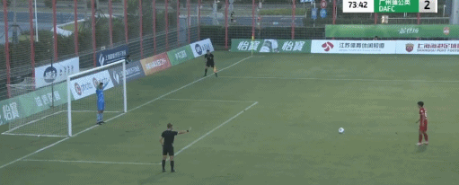 第74分钟,张俊杰造点,随后亲自主罚命中,上海海港B队1-2广州蒲公英